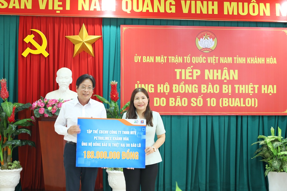 Tại buổi lễ, các cơ quan, đơn vị, doanh nghiệp trên địa bàn đã chung tay quyên góp, thể hiện tinh thần “tương thân tương ái”, hướng về đồng bào vùng bị thiên tai. Tập thể CBCNV-NLĐ Petrolimex Khánh Hòa đã quyên góp, ủng hộ với số tiền 188 triệu đồng nhằm chia sẻ khó khăn, hỗ trợ người dân khắc phục hậu quả bão lũ, sớm ổn định cuộc sống.