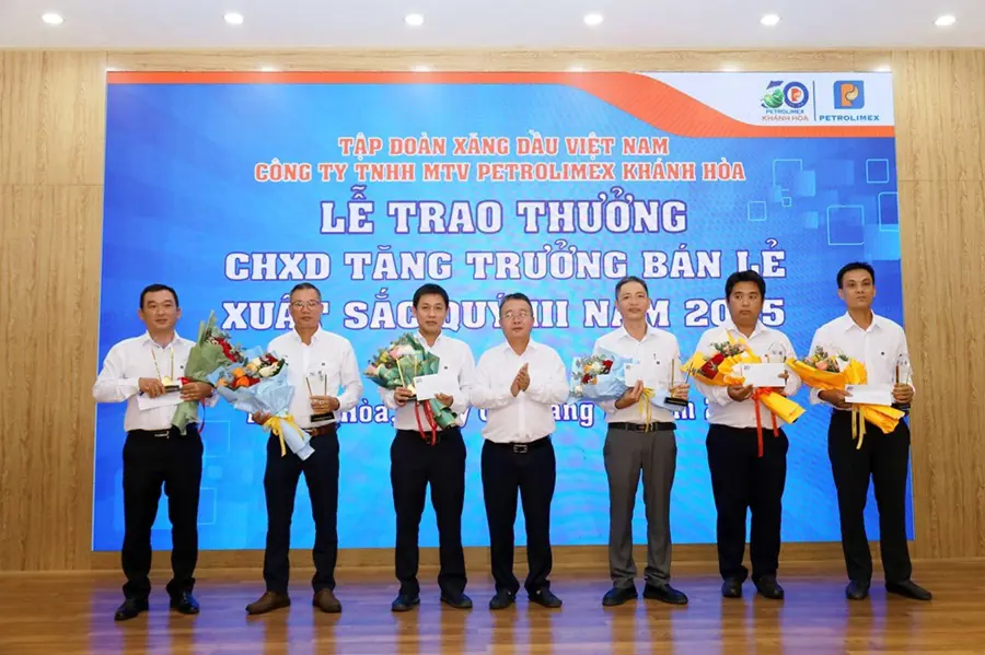 Khánh Hòa, sáng ngày 06.12.2025, thừa ủy quyền của Tập đoàn Xăng dầu Việt Nam (Petrolimex/Tập đoàn), Công ty TNHH MTV Petrolimex Khánh Hòa (Petrolimex Khánh Hòa/Công ty) đã tổ chức trao thưởng cho các cửa hàng xăng dầu tăng tưởng bán lẻ xuất sắc Quý III/2025 theo Quyết định số 1409/PLX-QĐ-TGĐ ngày 11/11/2025. Đây là sự ghi nhận, động viên kịp thời đối với những tập thể đã nỗ lực vượt khó, hoàn thành tốt nhiệm vụ kinh doanh.